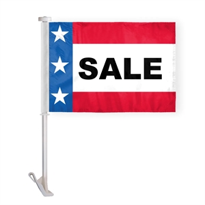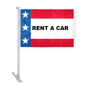 10.5" x 15" patriotic message car flag printed on 1-ply wrap knitted polyester with a 19" white plastic stiff pole.