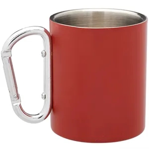 10 oz. carabiner handle stainless steel mug with double wall and brushed finish