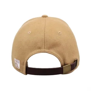 Melton wool cap with structured crown, low-profile fit, and leather snap & tuck closure for style and warmth.
