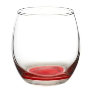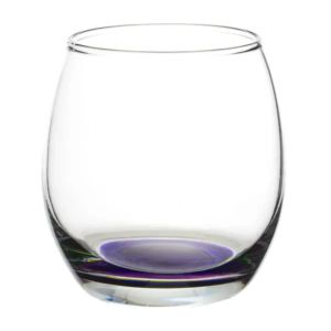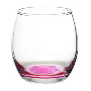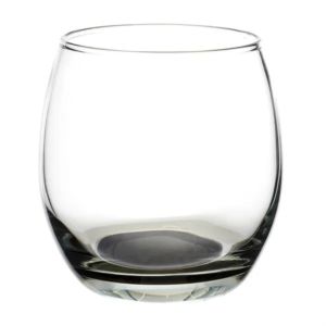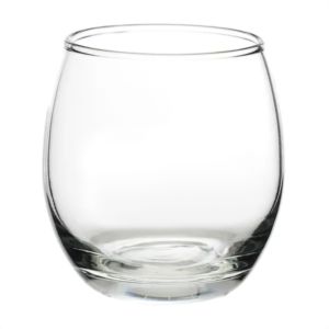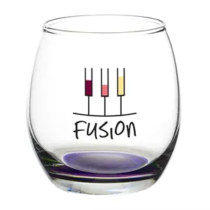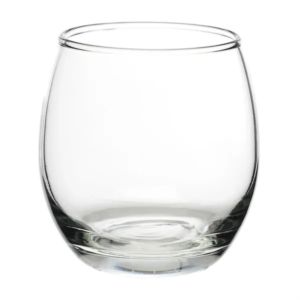 11.5 oz. stemless wine glass with a round complexion and ridged mouth.