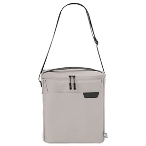 Durable 250D RPET ripstop, holds upto 12 cans thermal lining, 8" pocket, 1.25" nylon handle, adjustable strap, eco-friendly design