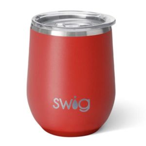 Insulated stainless steel Swig Life*TM) stemless tumbler with sliding lid and non-slip base.