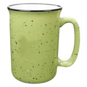 Tall mug with retro granite design that holds up to 14 oz.