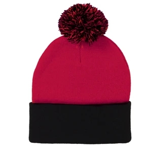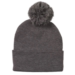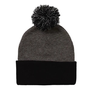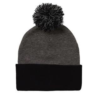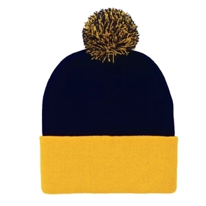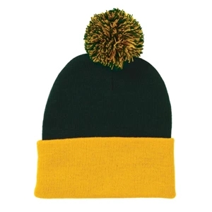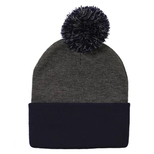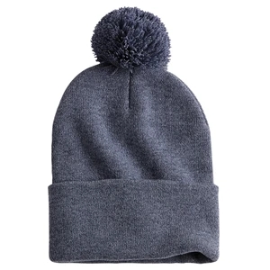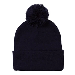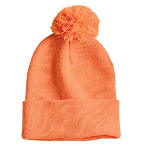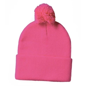Acrylic, 12" pom-pom knit cap.