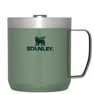 12 oz. stainless steel mug with double wall vacuum insulation and press lid.
