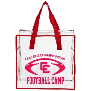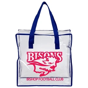 Clear vinyl stadium-friendly tote bag with 20" reinforced handles and zipper.