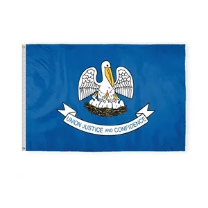 All-weather nylon Louisiana flag with pelican emblem, brass grommets & white header-multiple sizes offered.