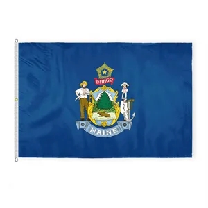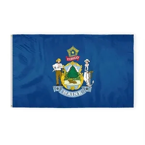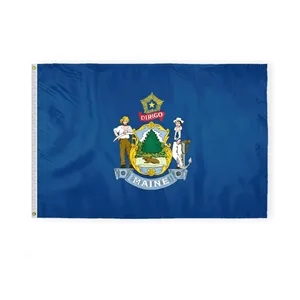 Premium nylon Maine flag with state arms, brass grommets & white header-available in various sizes.