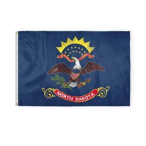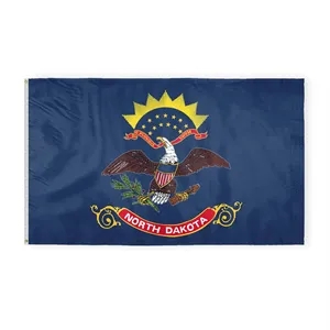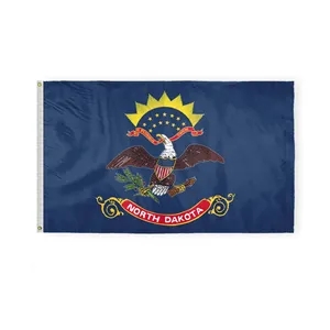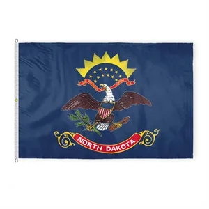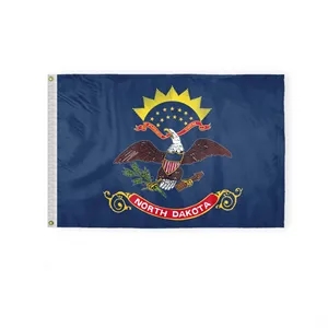 Premium nylon North Dakota flag with eagle & shield emblem, secured by brass grommets and white header-offered in many sizes.