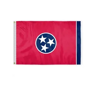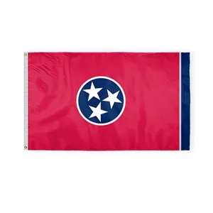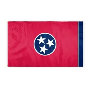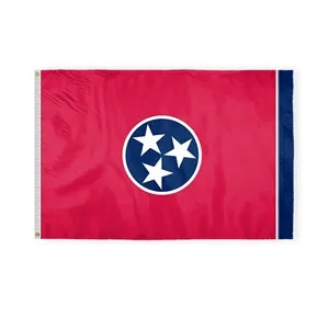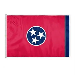 Premium nylon Tennessee flag with bold tricolor & three-star emblem, brass grommets, white header-offered in multiple sizes.