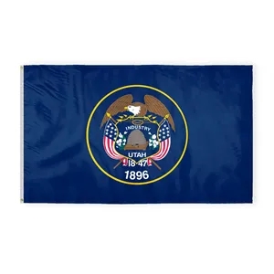 Durable nylon Utah flag with beehive & eagle emblem, brass grommets, white header-offered in a range of sizes.