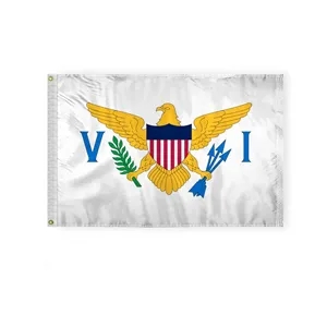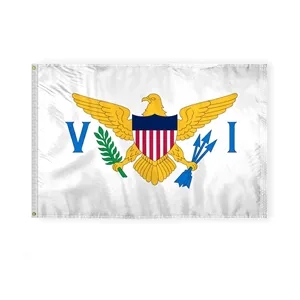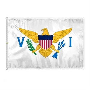 All-weather nylon U.S. Virgin Islands flag with eagle & "V.I." design, brass grommets, white header-available in many sizes.