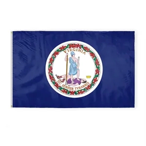 All-weather nylon Virginia flag with detailed state seal, brass grommets, white header-offered in multiple display sizes.