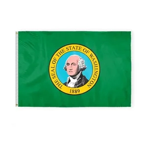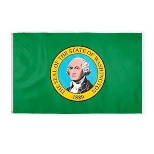 Premium nylon Washington flag with state seal on green, brass grommets, white header-available in multiple sizes.