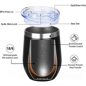 Double Wall Vacuum Insulated Stainless Steel Tumbler With Egg-Shaped Design. Perfect For Travel, Office, And Events.
