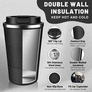 Insulated Coffee Tumblers with Flip Lid, Stainless Steel Travel Coffee Mug Leak Proof.