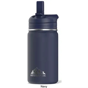 14-ounce stainless steel water bottle with insulation and straw lid.