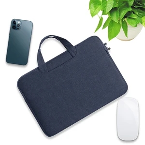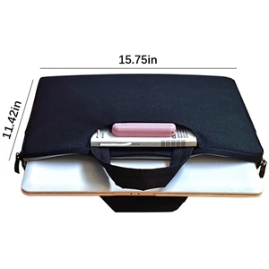 15.75" x 11.42" Oxford fabric laptop sleeve for 15.6" device with zipper closure and handles.