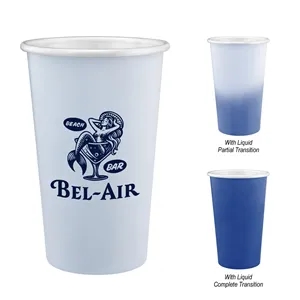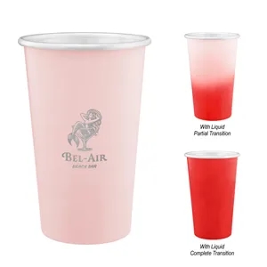 15 oz. recycled aluminum cup that changed color with ice cold beverages are added.