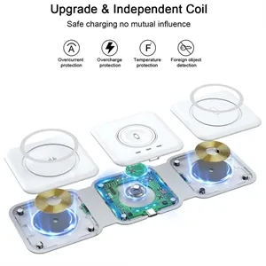 9 3/4" x 3" x 3 3/8" ABS plastic multi-device wireless charging deck with folding action.