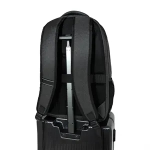 Durable polyester backpack with 16" laptop storage and travel ready comfort.