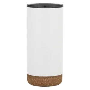 16-ounce double wall stainless steel tumbler with screw-on lid and rubberized base.