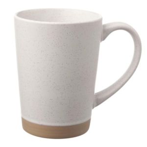 16 oz. ceramic mug with matte exterior, speckle accents and comfort grip.