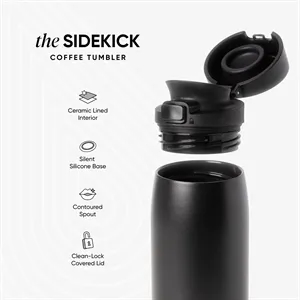 16 oz Sidekick Tumbler with splash-guard spout, locking lid, ceramic interior, and a slim, travel-friendly design for spill-free!