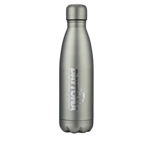 17 oz. stainless steel water bottle with vacuum insulated copper plated liner and screw-top lid.