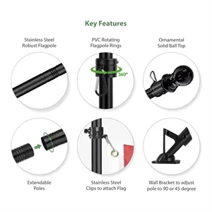 Price Includes:flagpole, rotating clips, bracket, 12"x18" 200D Nylon flag