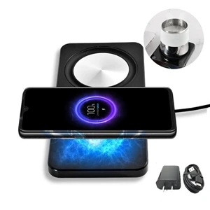 8.27" x 3.94" x 0.65" 2-in-1 coffee mug warmer and wireless device charger.