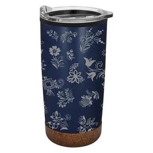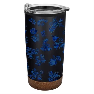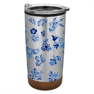 20 ounce stainless steel tumbler with lid and rubberized base.