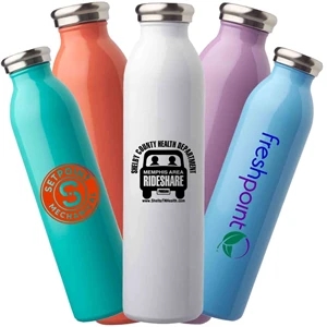 20 oz. double wall, vacuum insulated stainless steel water bottle with screw-on cap.