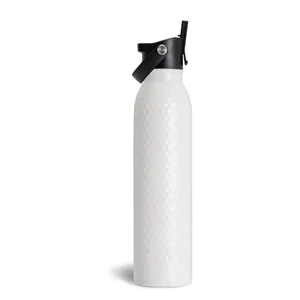20 ounce insulated stainless steel sports bottle with screw-on lid and looped handle.