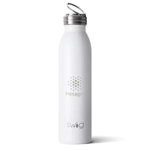 20 ounce copper-plated stainless steel Swig Life™ bottle with wide mouth lid, screw-on lid, non-slip base and handle.