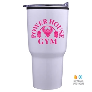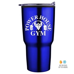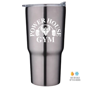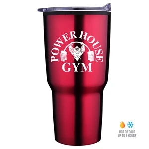 20 oz. tumbler with double wall insulation and spill-resistant, slide-action lid in custom gift box.