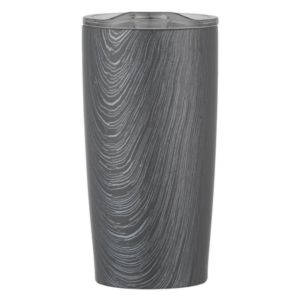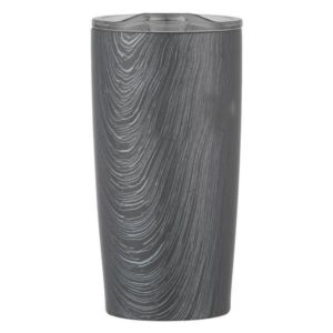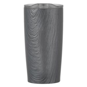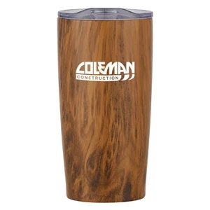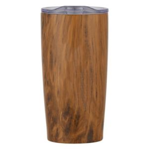 20 oz. wood tone travel mug with spill-resistant lid and double-wall insulation