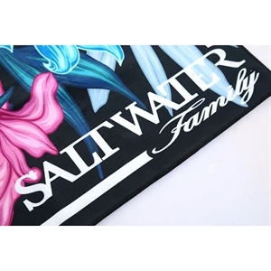 Full Color Edge-To-Edge Dye-Sublimation; Microfiber Velour with Cotton terry loops backing; Size: 20"W x 30"L; Thickness: 420 GSM