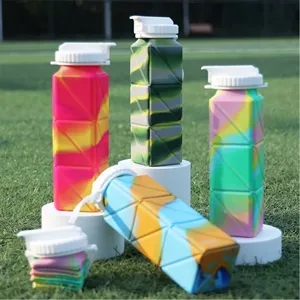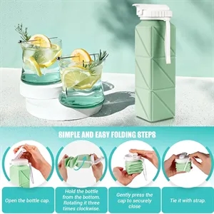 Collapsible Water Bottle 20oz BPA Free Leakproof Portable Silicone Foldable Cup for Travel Camping Hiking Cycling Outdoor Sports