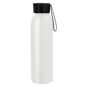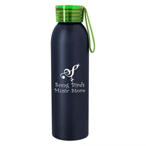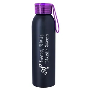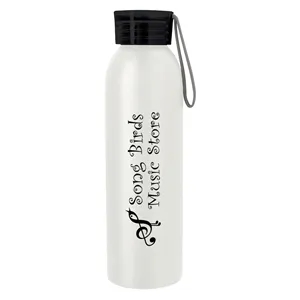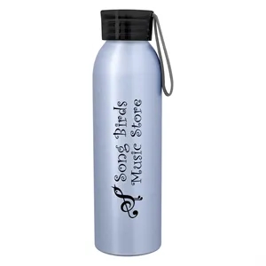 22 oz. BPA-free water bottle made of aluminum with a screw-on, spill-resistant lid and an easy carry handle.