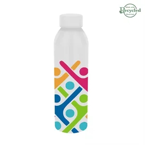 22 oz. aluminum bottle with wide mouth opening and spill-resistant lid.