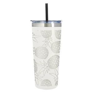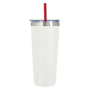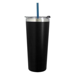 24 oz. stainless steel tumbler with double wall vacuum insulation, snap-on, spill-resistant lid and 9.5" straw.