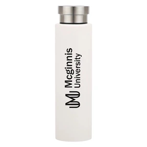 24 oz. stainless steel bottle with double wall vacuum insulation and a screw on, spill-resistant lid.