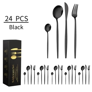 24 Piece Golden Plated Stainless Steel Flatware Set