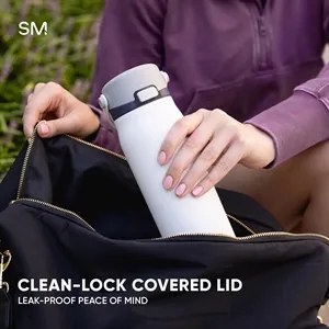 24 oz. double-walled stainless steel water bottle with chug lid and flexible carry handle.