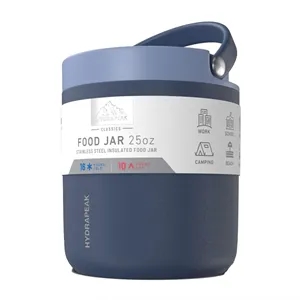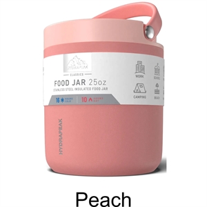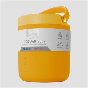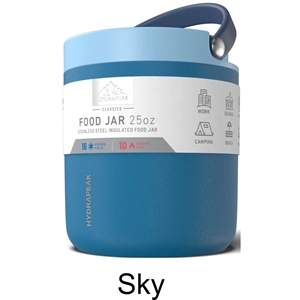 25 oz stainless steel food jar: Durable 18/8 steel, vibrant coating, 10h hot/16h cold insulation, wide mouth, sturdy handle.