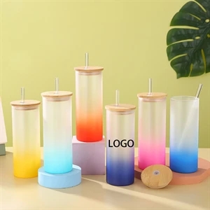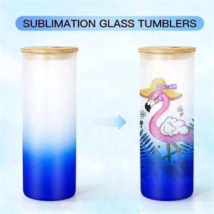 Blank Glass with Bamboo Lid Gradient Color, 25 oz Glass Straight Skinny Tumbler, Reusable Drinking Jar for Juice Coffee Milk