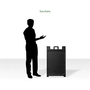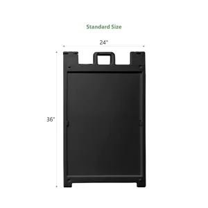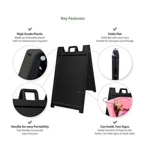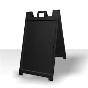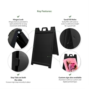 Durable 24" x 36" plastic A-frame with handle, stay tabs, hinge locks, and sand-fill holes.