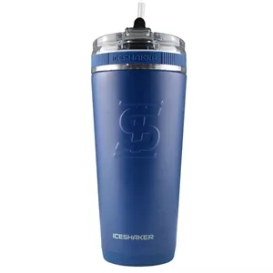 26-ounce stainless steel shaker bottle with insulation, lid, spout, and straw.
