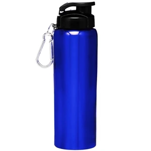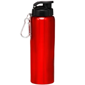 27 oz. non-insulated stainless steel bottle with carabiner and flip top lid.